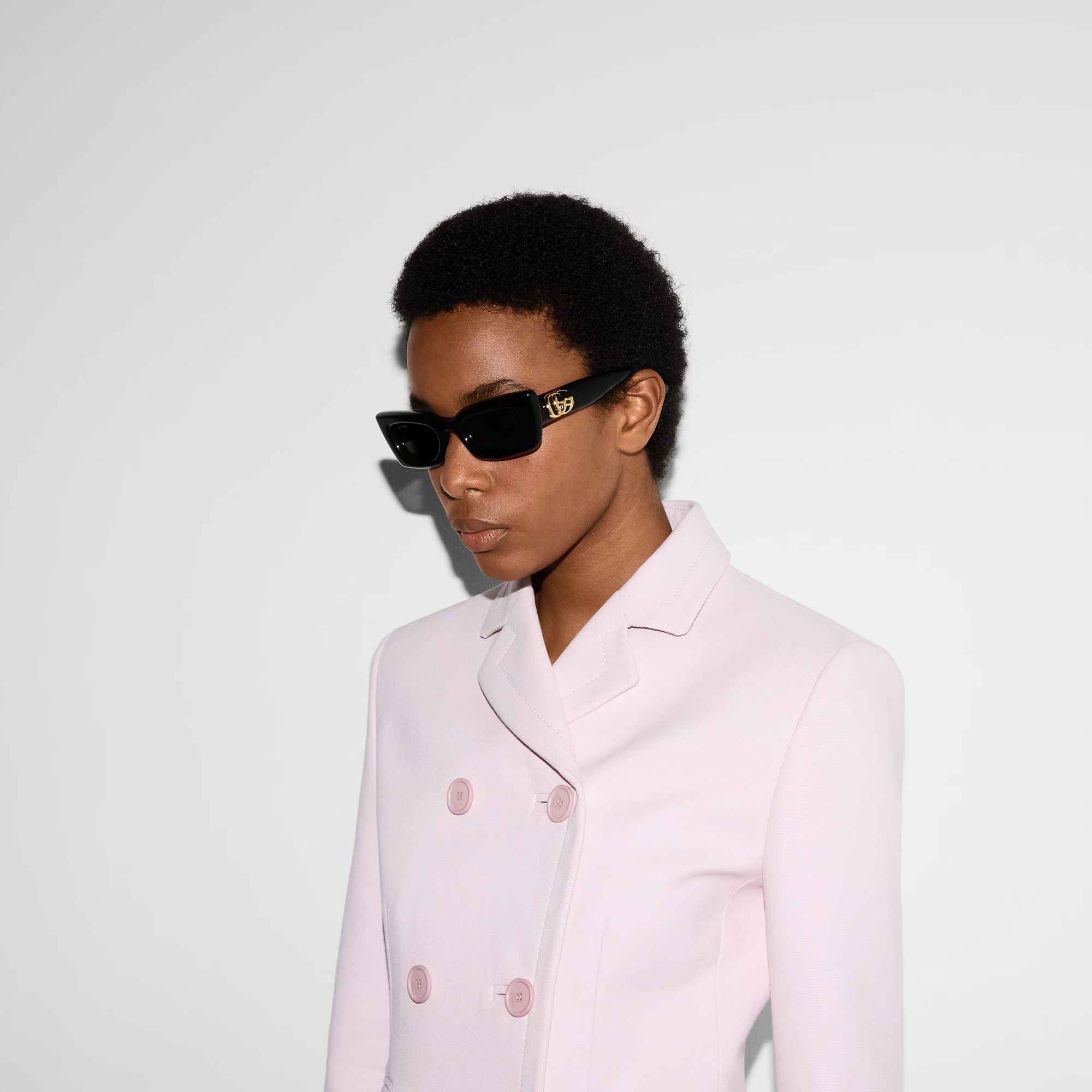 Kolekce brýlí Cruise 2025 kombinuje objemnou siluetu a charakteristické motivy ve vyšším designu. Tyto sluneční brýle s kočičíma očima mají silný rám a detail Double G na spáncích.