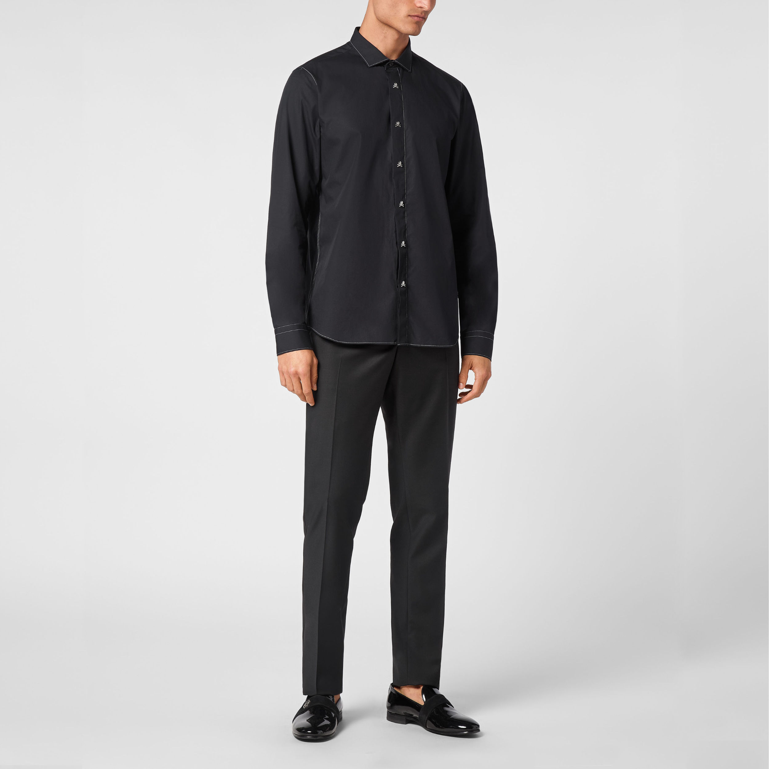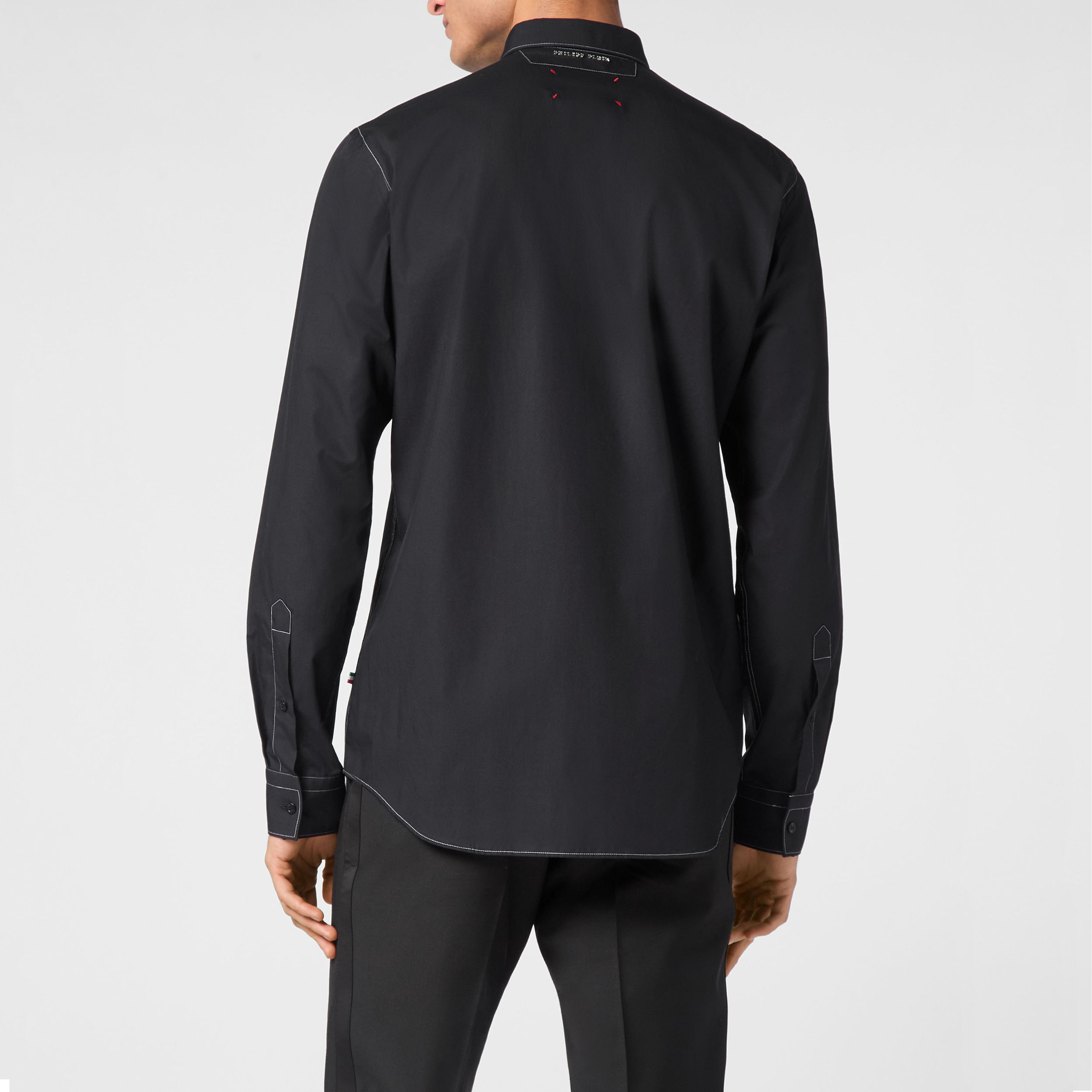 Contrast Stitching Shirt Sugar Daddy Cut Long-Sleeve B