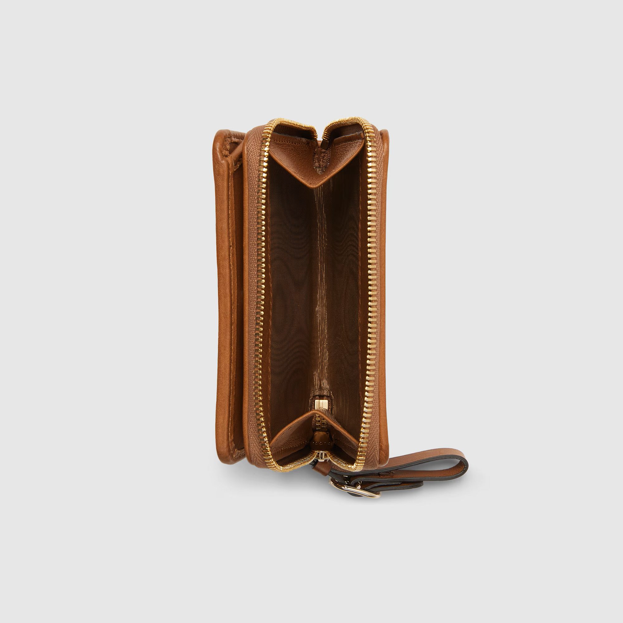 Nová kolekce GG Emblem nově interpretuje historii elegance a řemeslné zručnosti domu. Tato béžovo-tmavě hnědá mini peněženka na zip je vyrobena z nové látky GG Monogram. Je vybavena několika přihrádkami a uzavírá se funkčním zipem a karabinkou.