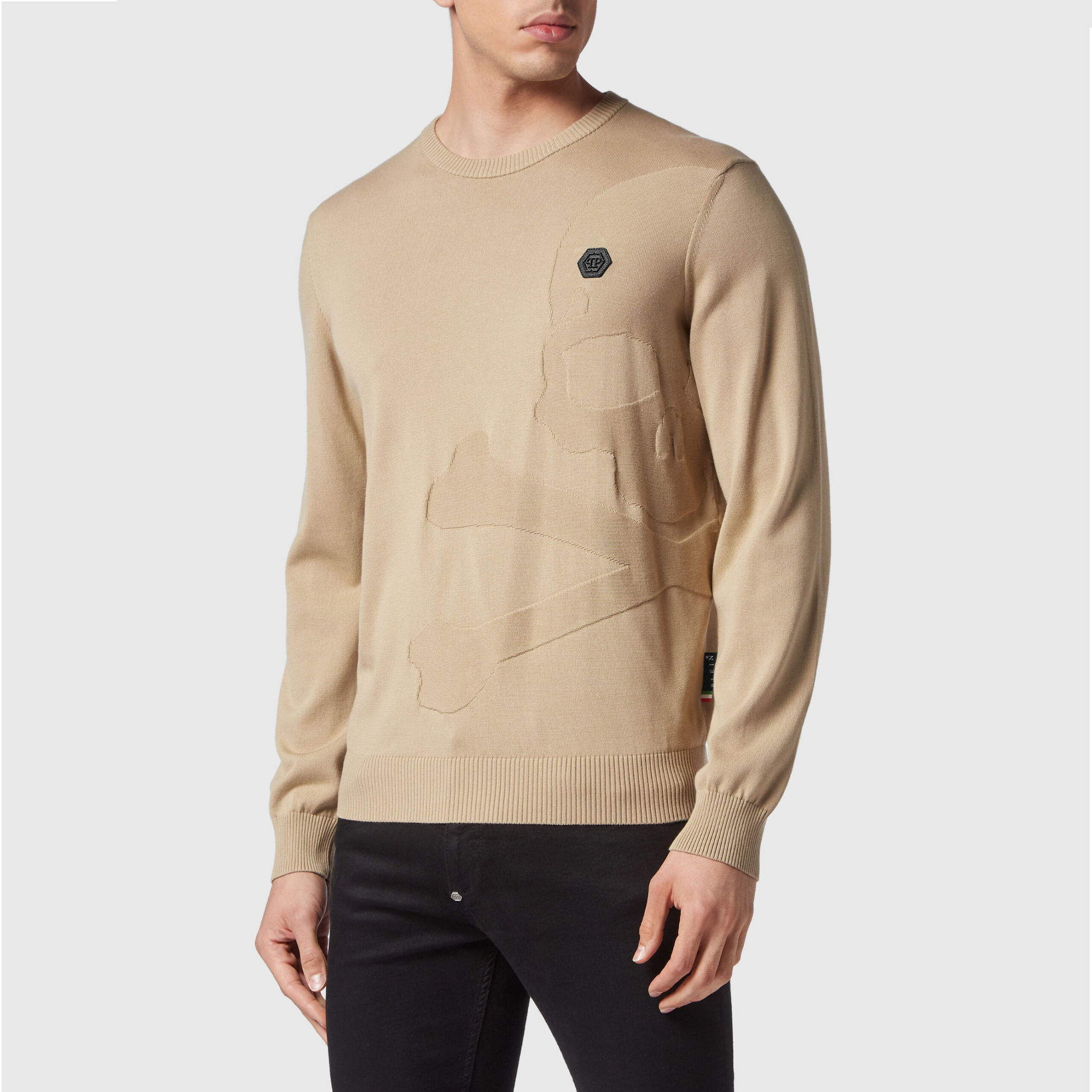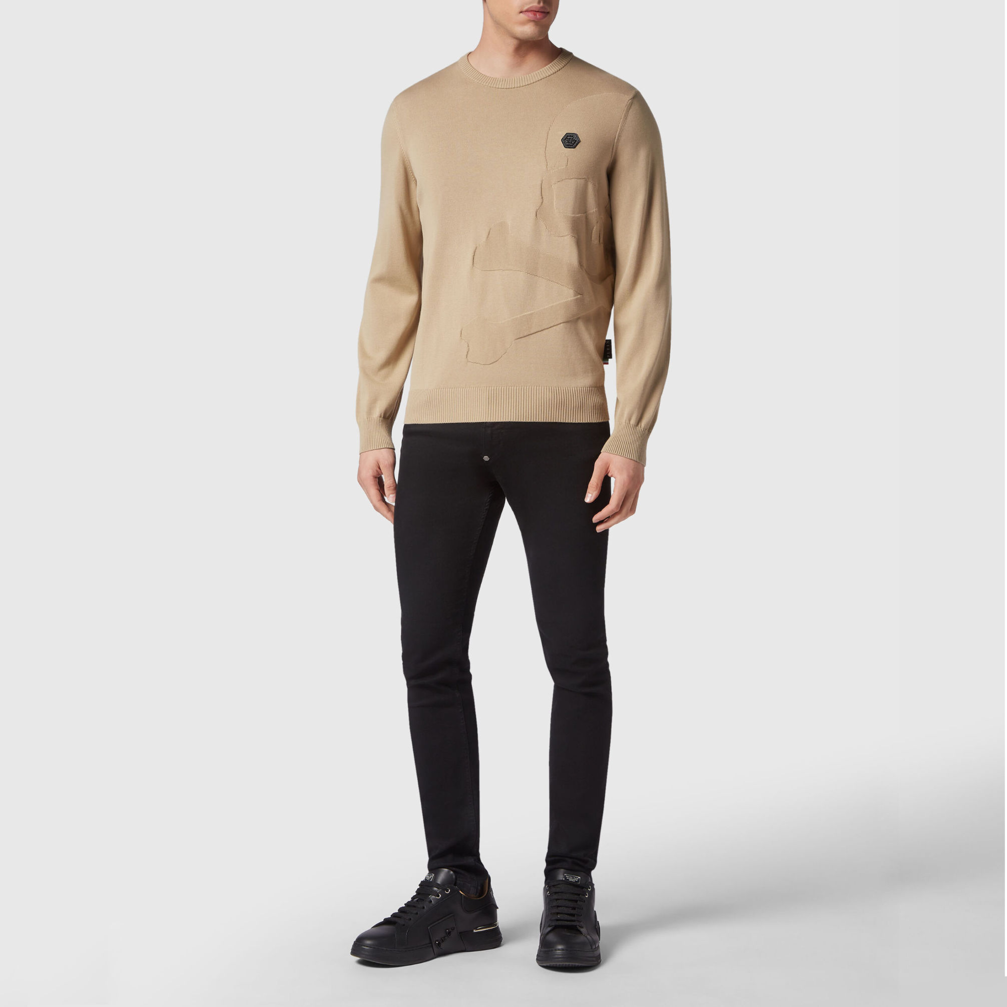 Philipp Plein Bavlněný svetr LS Skull&Bones. Objevte, jak být originální jen v pulovru s výstřihem.