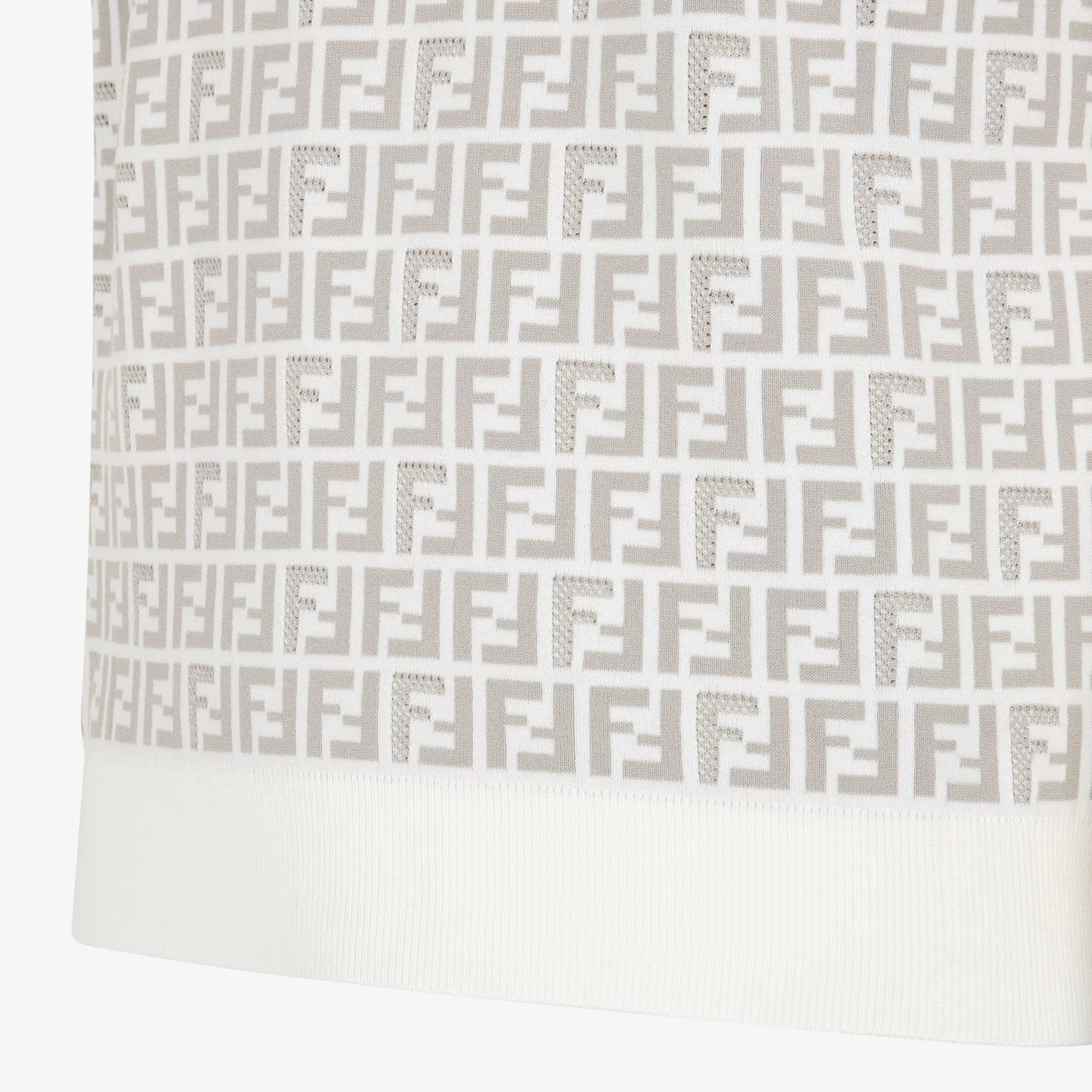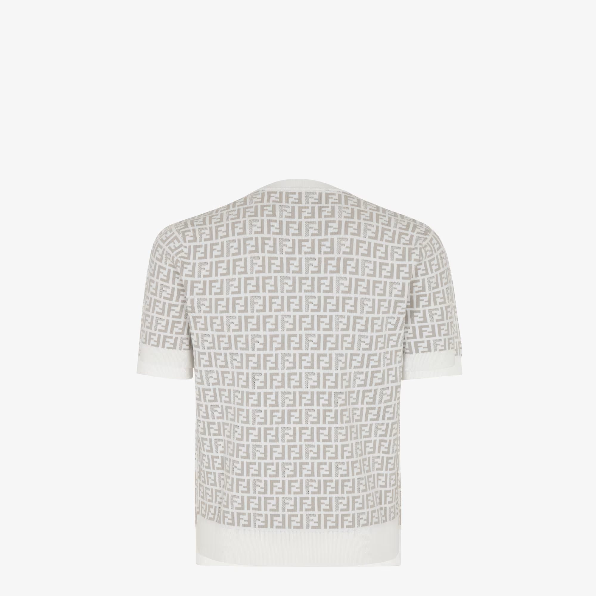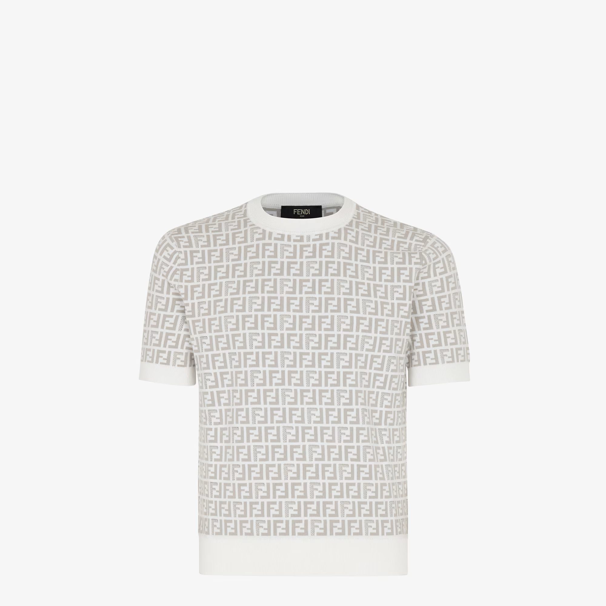 Svetr s krátkými rukávy a výstřihem. Žebrované okraje. Vyrobeno z bílé viskózové příze s vložkou s motivem FF. Vyrobeno v Itálii
